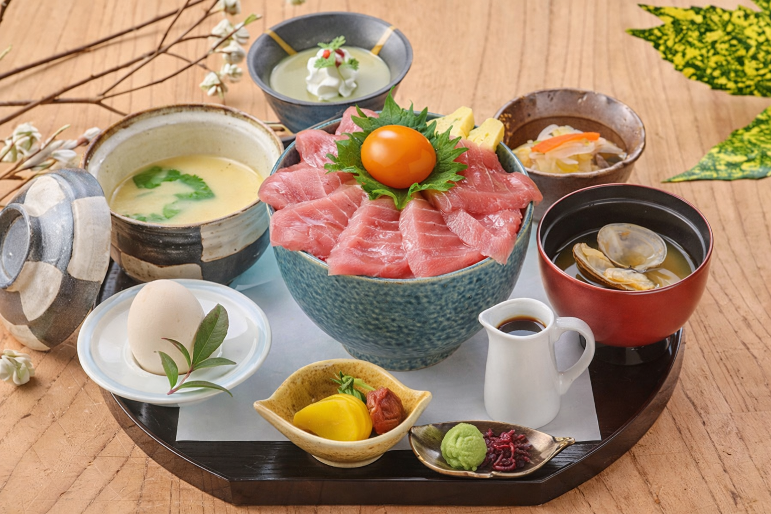 料理内容(鮪丼/茶碗蒸し/小鉢/味噌汁/香の物/甘味)
